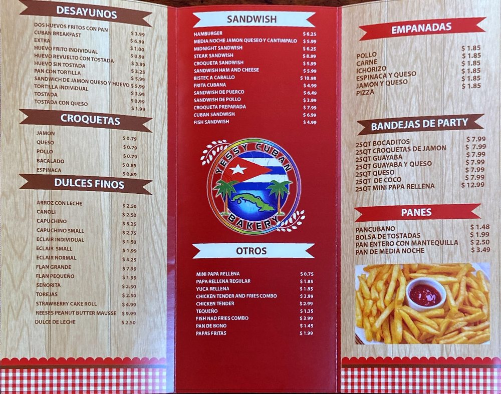 Welcome to Yessy Cuban Bakery, a delightful gem nestled in Fort Myers, FL, known for its authentic Cuban flavors and vibrant atmosphere. This charming bakery offers a plethora of options, catering to both savory palates and sweet cravings. Highlights include the Mini Papa Rellena and Tequeno de queso, perfect for quick bites, while the Chicken Tender and Fries Combo promises a fulfilling meal for families.
